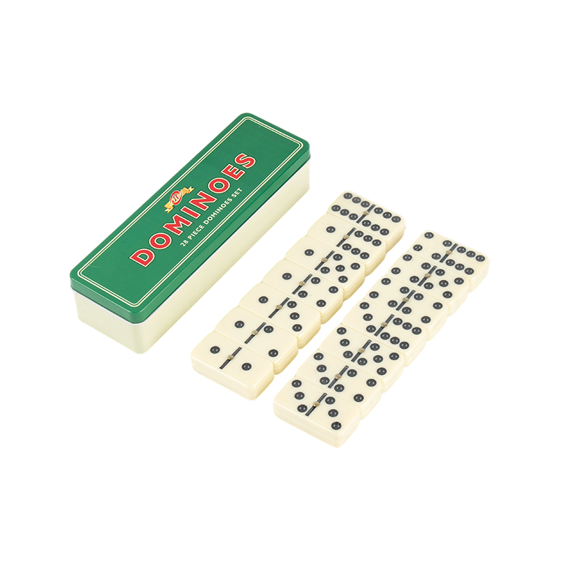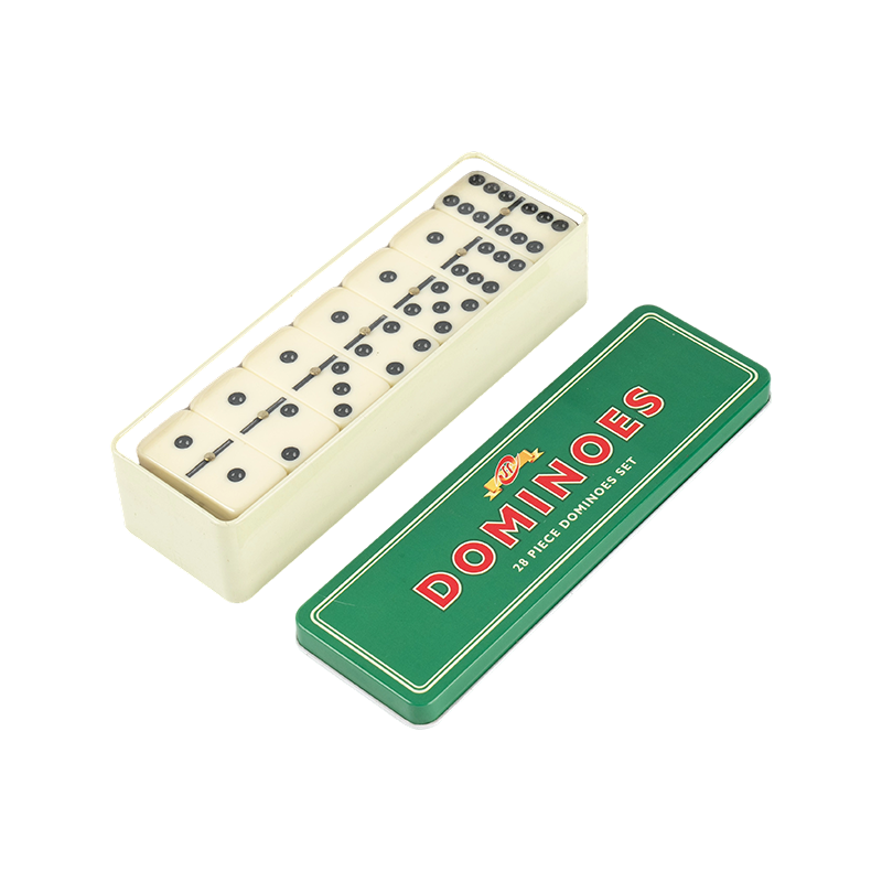Double Six Domino cổ điển với hộp sắt màu xanh lá cây và trắng